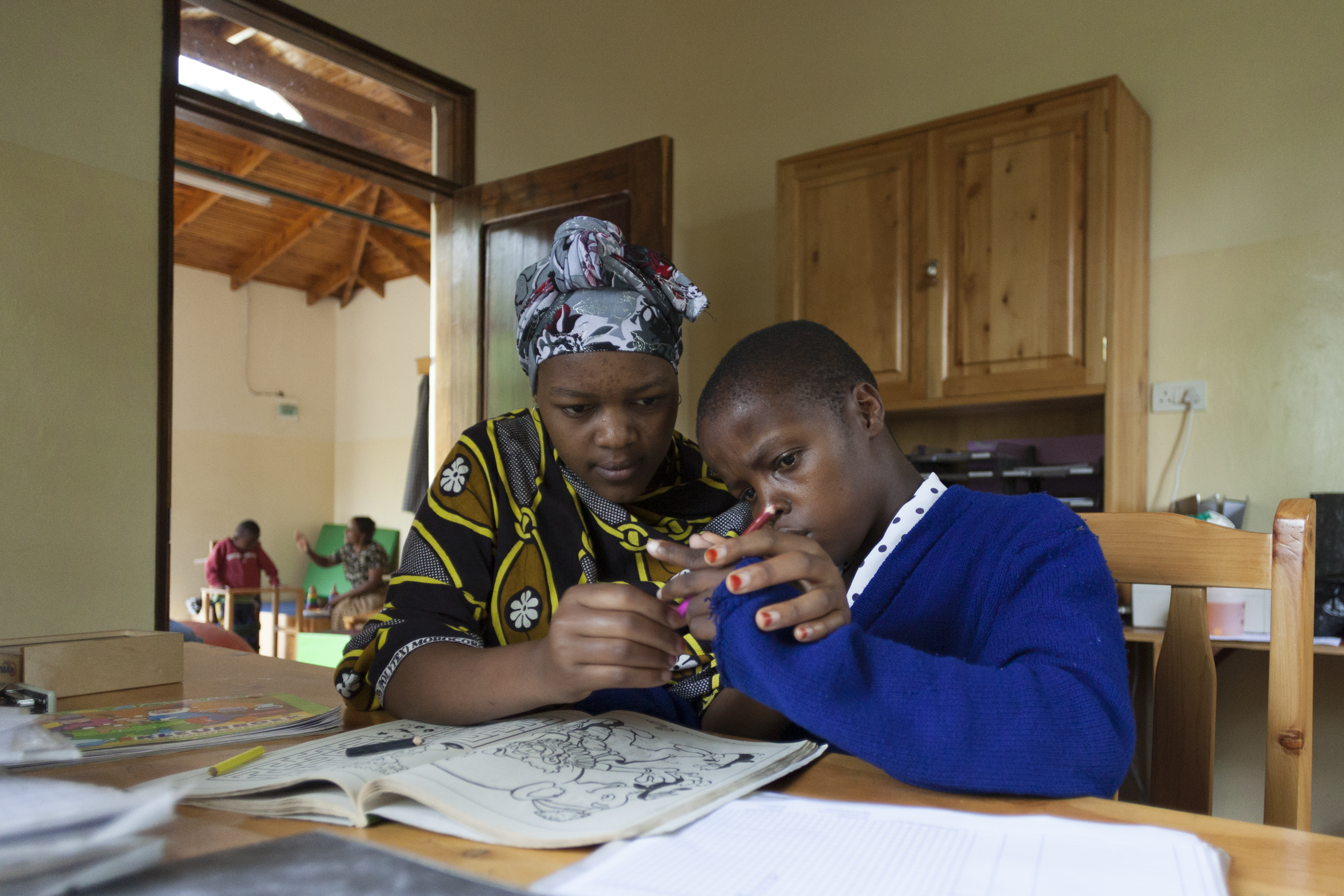 Het centrum heeft drie woonhuizen voor de moeders met hun jonge kinderen. Gedurende het 7 wekenprogramma verblijven ze hier intern gedurende de week. Op het centrum werken we met een vast dagprogramma. De moeder leren we hoe hun kind te helpen tot zelfstandigheid, en is er ook veel overleg tussen de moeders onderling. Er ontstaan soms hechte banden.